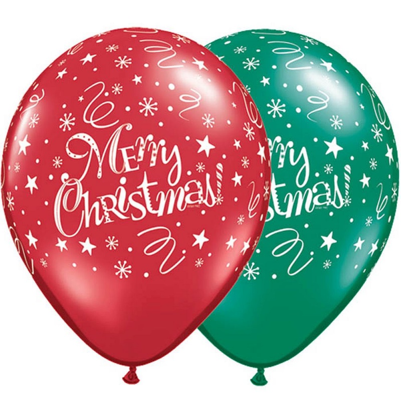 Setul contine baloane de 28 cm inscriptionate cu "Merry Christmas". Aceste baloane se pot umfla cu aer sau cu heliu. Sunt potrivite pentru ocazii precum: petreceri tematice, corporate, serbari si Craciun.