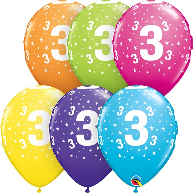 Setul de baloane multicolore imprimate cu Cifra 3 este o alegere perfecta pentru o zi de nastere extra VESELA!