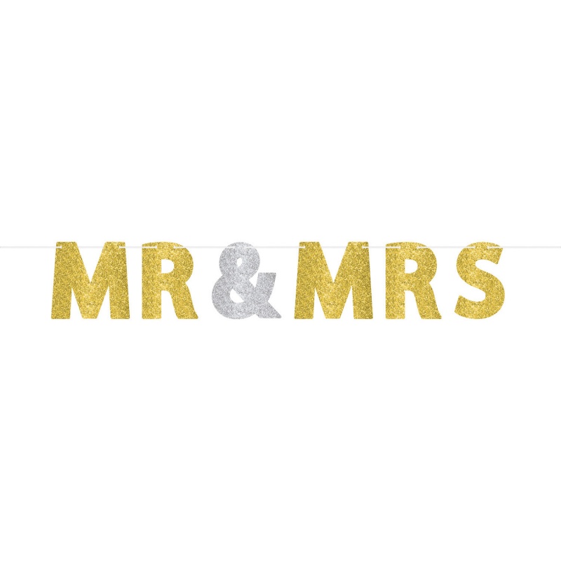 Decoreaza locatia nuntii tale cu acest banner cu sclipici Mr. & Mrs.!