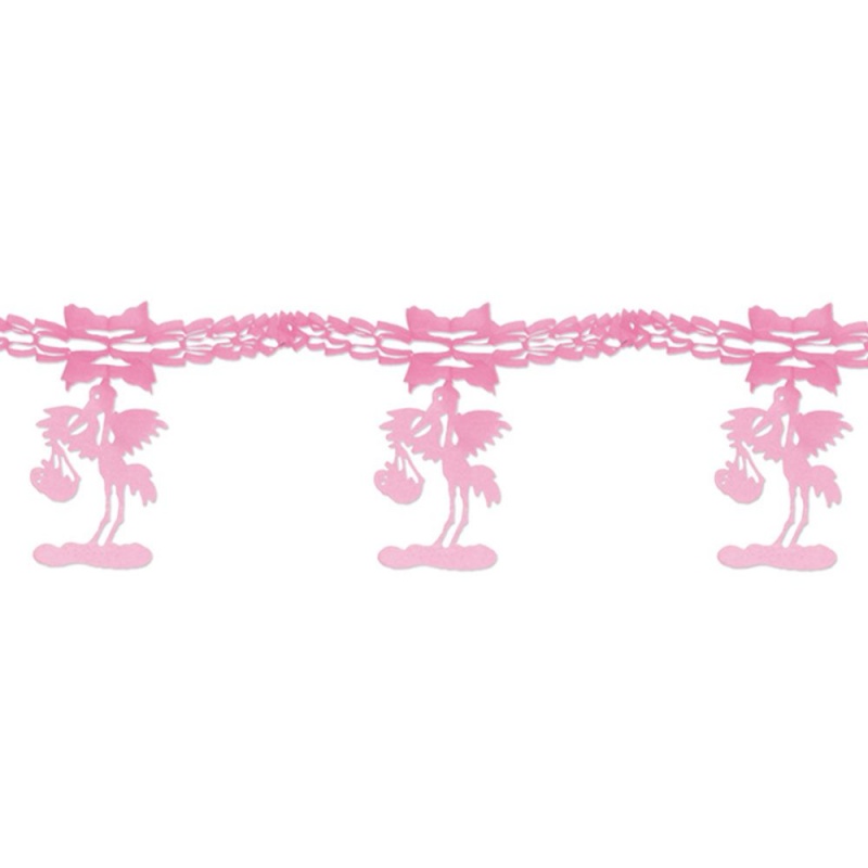 Ghirlanda are forma de barza si se poate folosi pentru petrecerile de baby shower, botez sau prima aniversare.