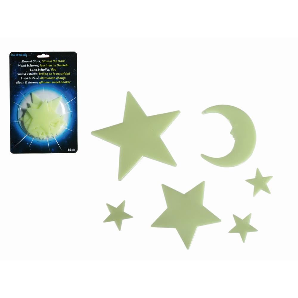 Setul contine 15 bucati de stelute si o luna fosforescente. Ele se pot lipi pe tavan sau pe peretele din camera copilului, iar la intuneric stralucesc. Acestea creeaza un decor deosebit al camerei pe timp de noapte.