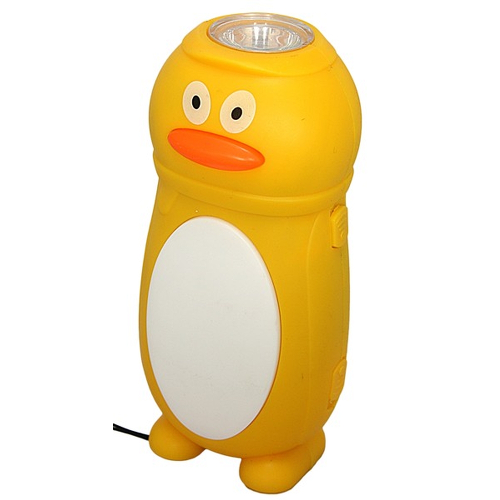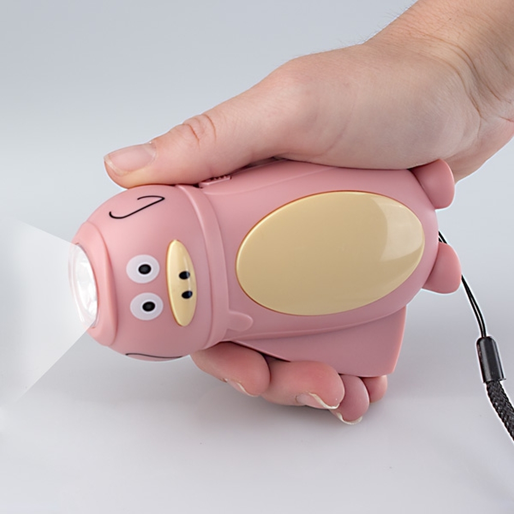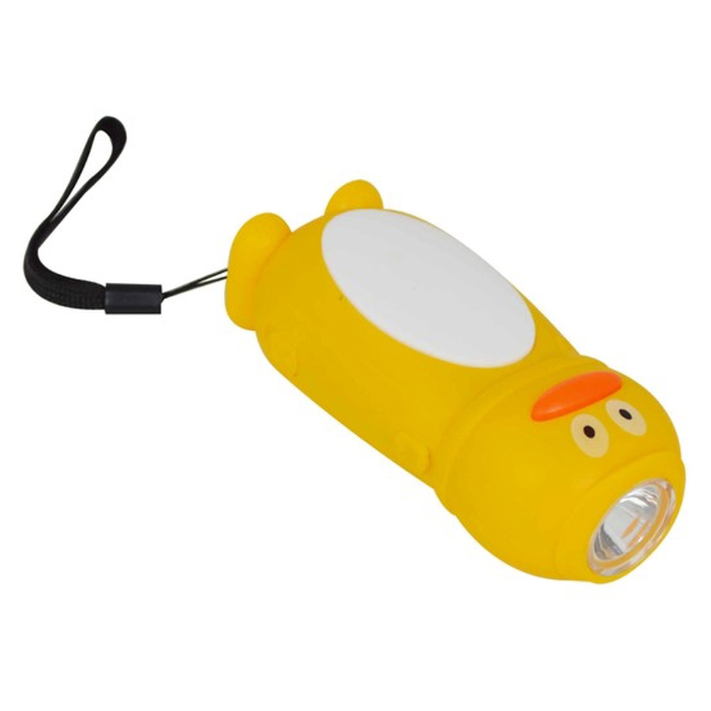 Lanterna led pentru copii.Aceasta functioneaza pe baza unui dinam pe care il activati in partea laterala a animalului( se deblocheaza butonul) .Include si o bratara pentru agatat.