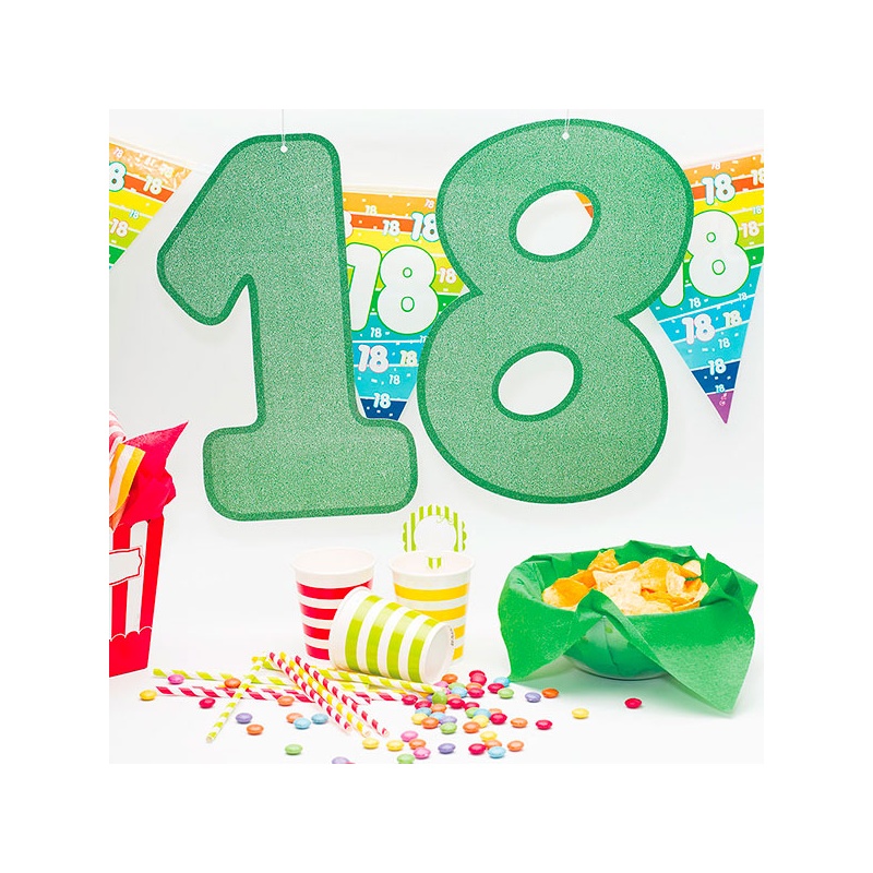 Decoreaza locatia petrecerii tale cu aceasta decoratiune "18 ani" cu sclipici! Se poate folosi atat in interior, cat si in aer liber.